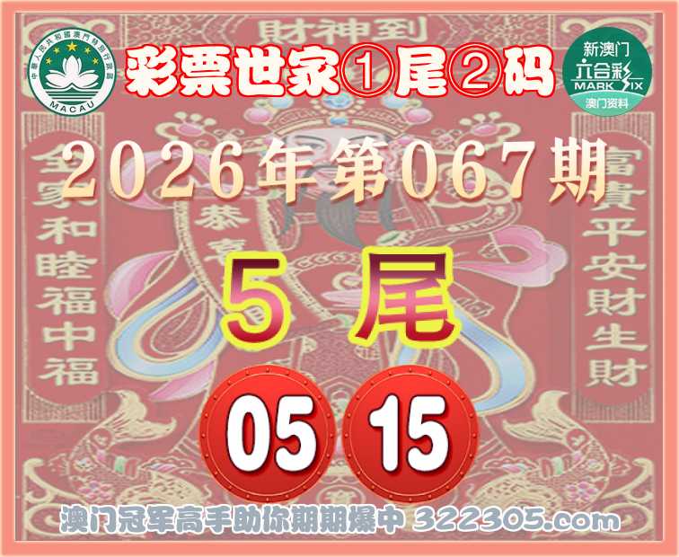 067期: 🎯『彩票世家』 🎯①尾②码🎯【5尾主:05.15】开:05准