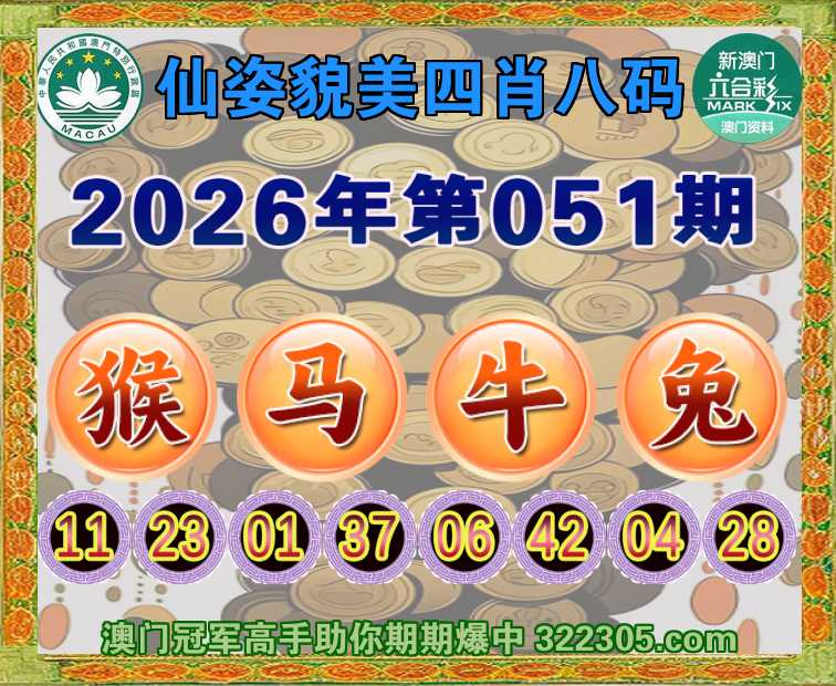 051期:【仙姿貌美】 🏅四肖八码🏅【猴马牛兔】开:马01准