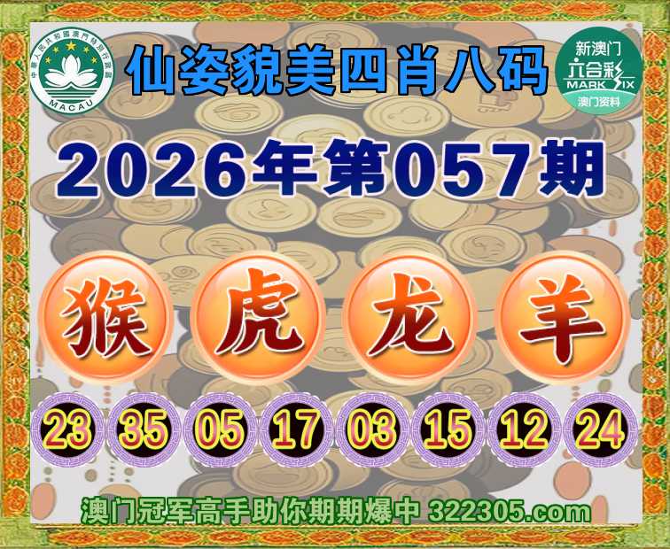 057期:【仙姿貌美】 🏅四肖八码🏅【猴虎龙羊】开:猴23准
