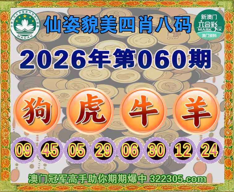 060期:【仙姿貌美】 🏅四肖八码🏅【狗虎牛羊】开:狗09准