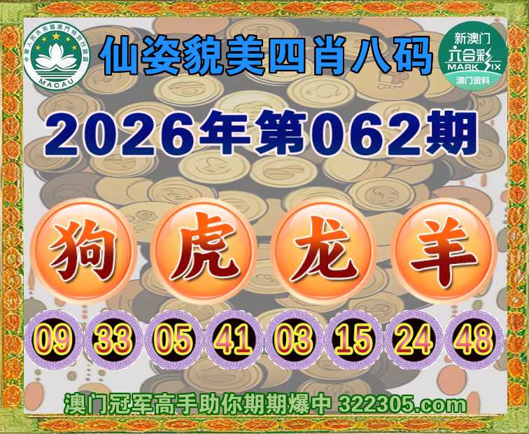 062期:【仙姿貌美】 🏅四肖八码🏅【狗虎龙羊】开:羊24准