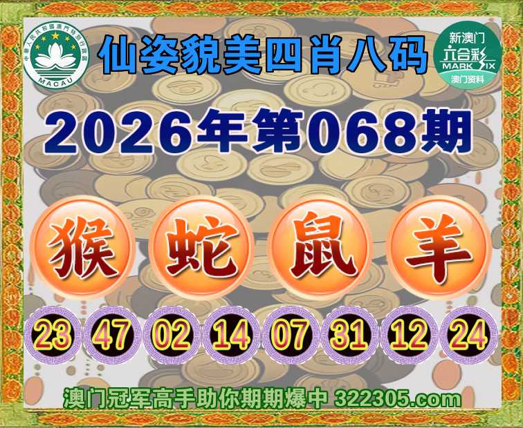 068期:【仙姿貌美】 🏅四肖八码🏅【猴蛇鼠羊】开:猴23准