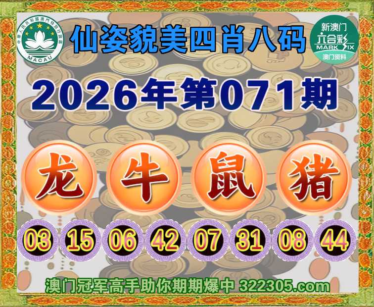 071期:【仙姿貌美】 🏅四肖八码🏅【龙牛鼠猪】开:00准