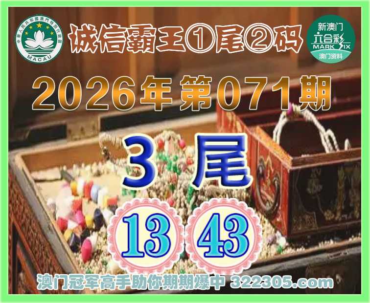 071期:《诚信霸王》 👉①尾②码👉【3尾主:13.43】开:00准