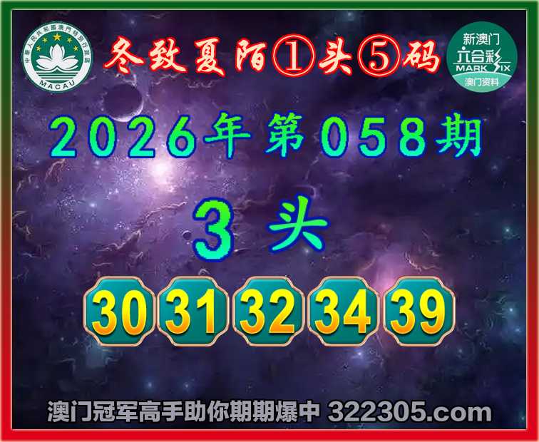 058期:《冬致夏陌》 💎①头⑤码💎【3头主:30.31.32.34.39】开:31准